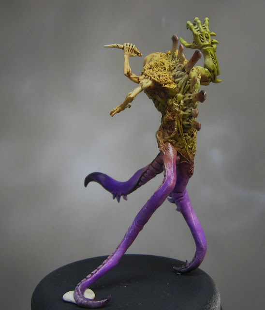 The spawn up top includes bitz from the vargheist sprue, ghouls, mutalith, and a tyranid gargoyle tail.  The assembly was rough because I knew I would be sculpting over the seams.  It went from grey plastic to 3 colors with a wash in 2 days.